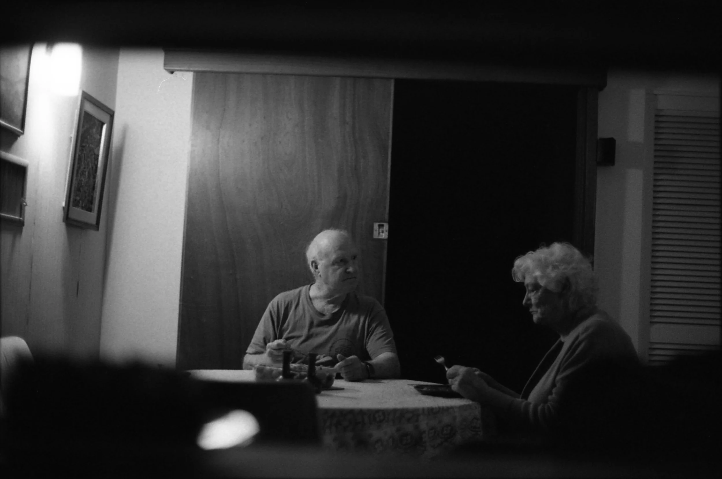 Taken on my Grandpa’s camera, from the kitchen. They’re in the same seats at the same dining table we’ve all eaten at. A lace tablecloth, on a weeknight. My Grandpa passed away a few months after I took this photo. We still sit at the same table, in different seats.